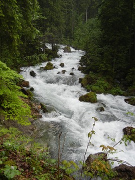 downstream from the waterfall
