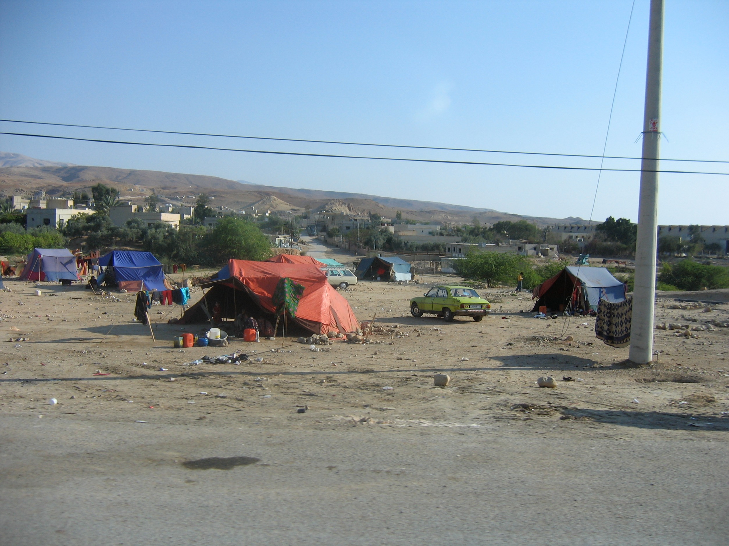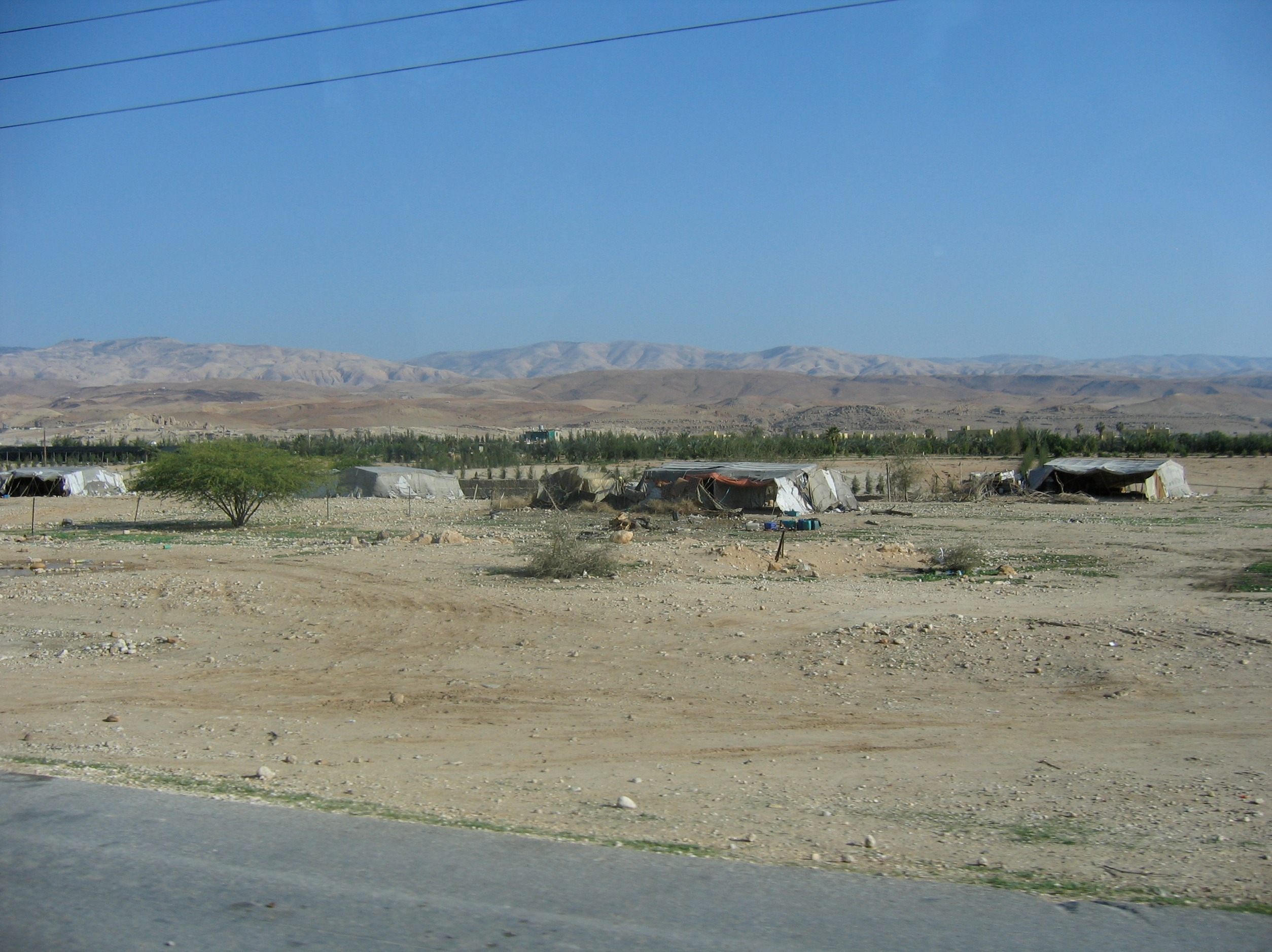 We spent an afternoon visiting the Dead Sea, the lowest elevation point on earth. Its shore is about 1385 feet below sea level. The sign below indicates 1280 but other sources put it at 1385. The depth is listed as 1240 feet. It is 8 times more salty than the oceans. The lake, at its widest point, is 11 miles wide and it is 42 miles long. The popular thing to do there is to float in the water, which is very easy. En-route we saw many road side Bedouin camps.