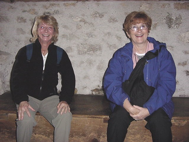 Darlene & Barb on the two holer - Chillon