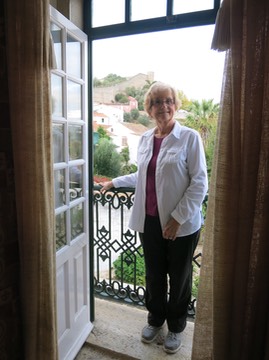 Barb on our Obidos balcony