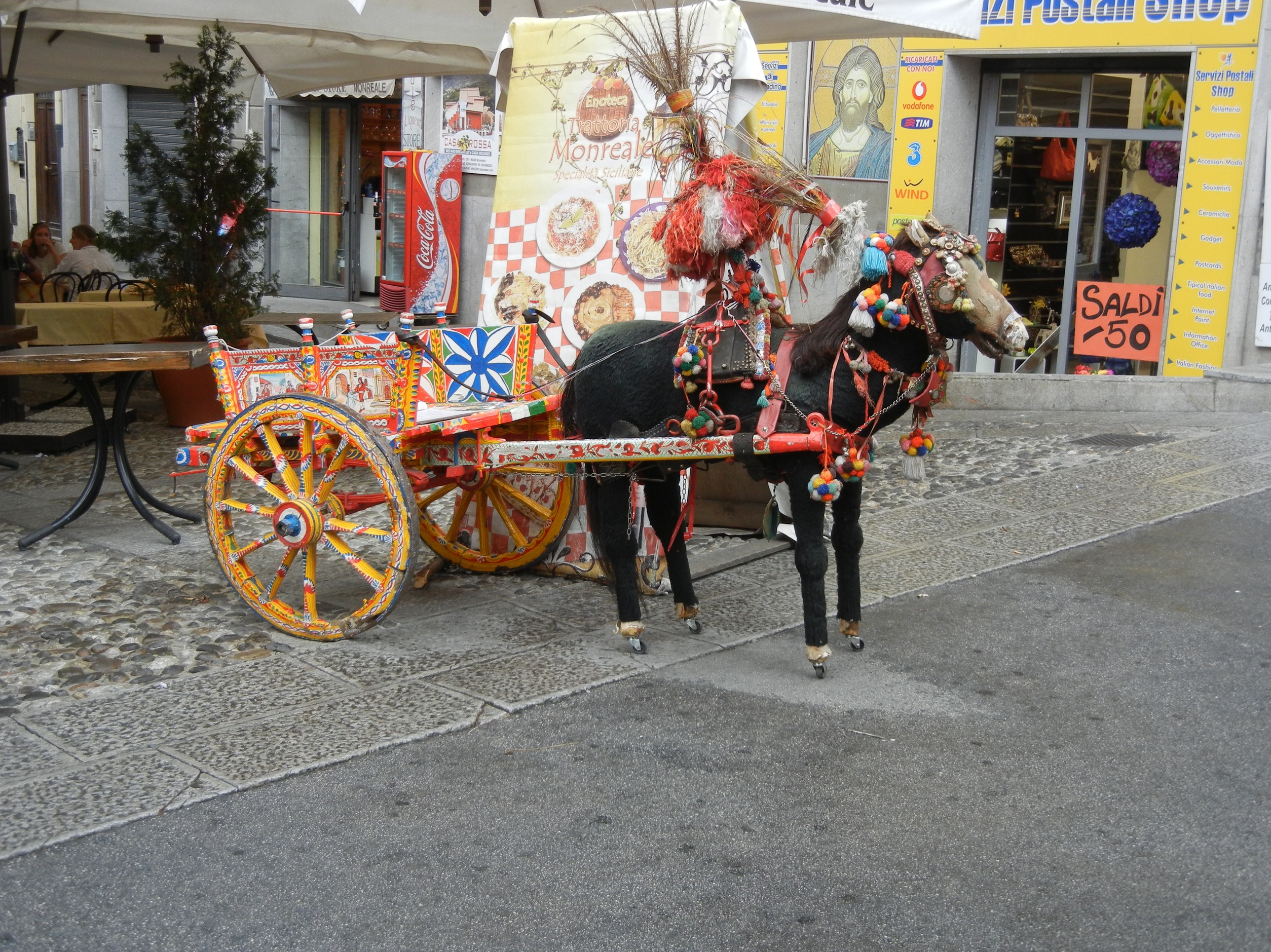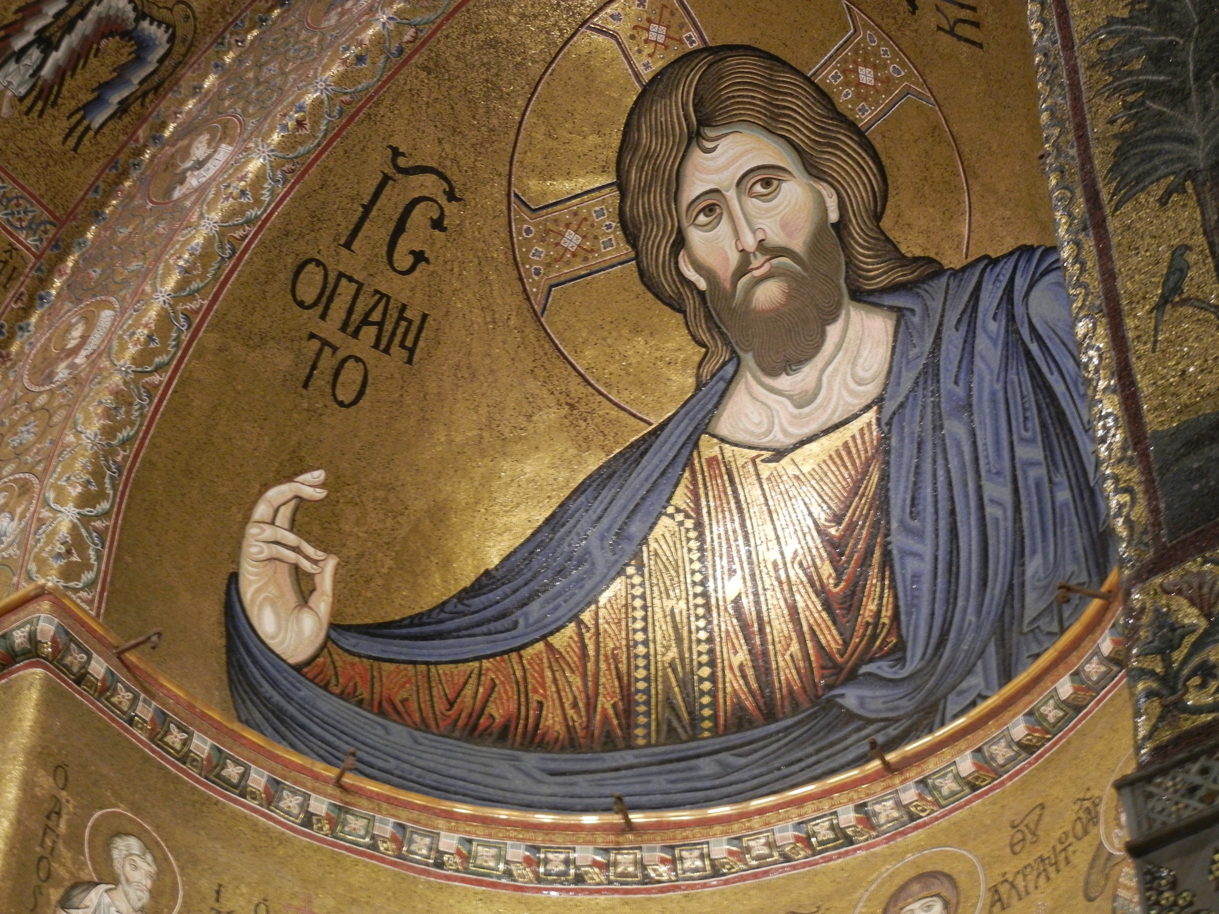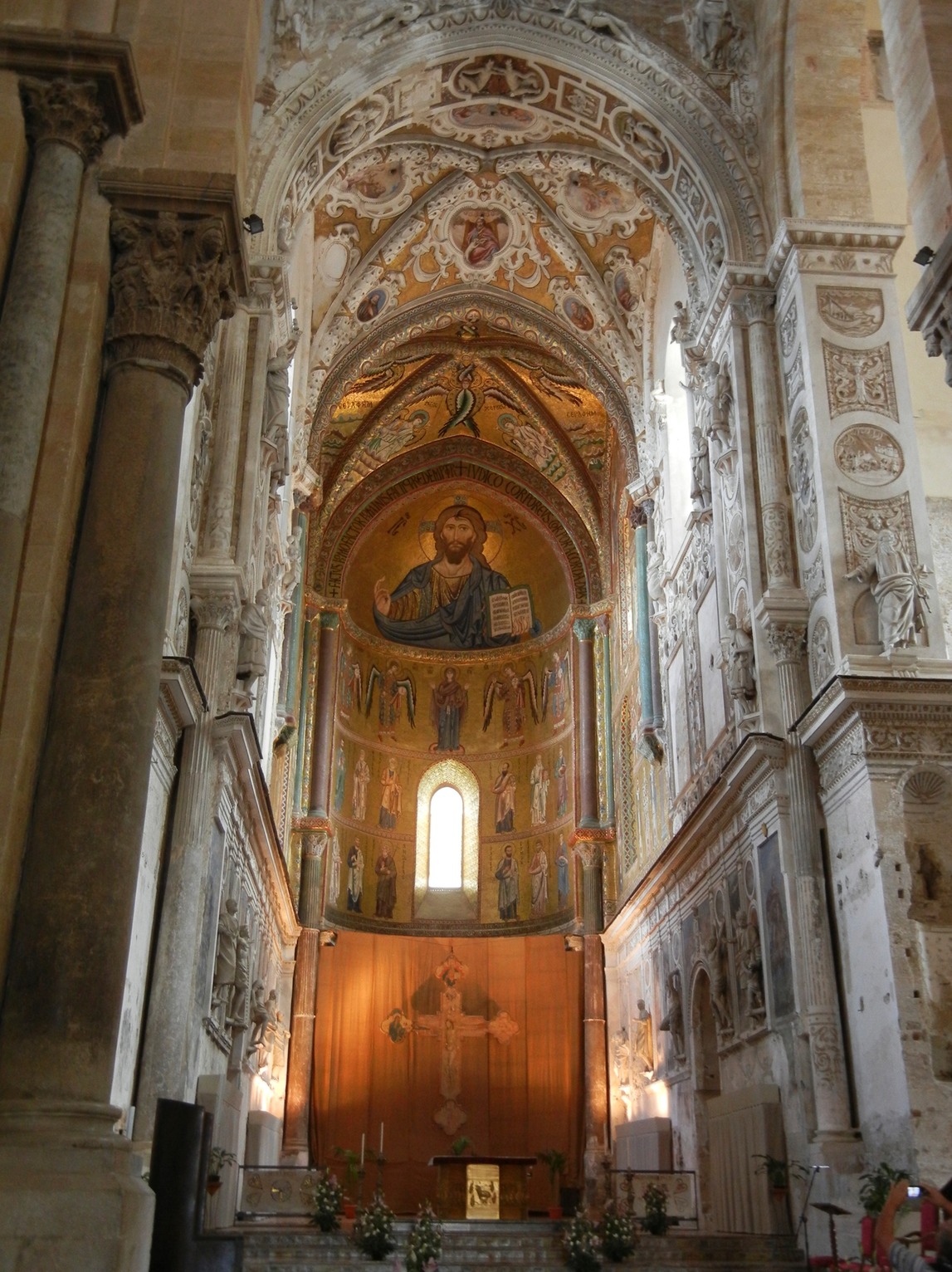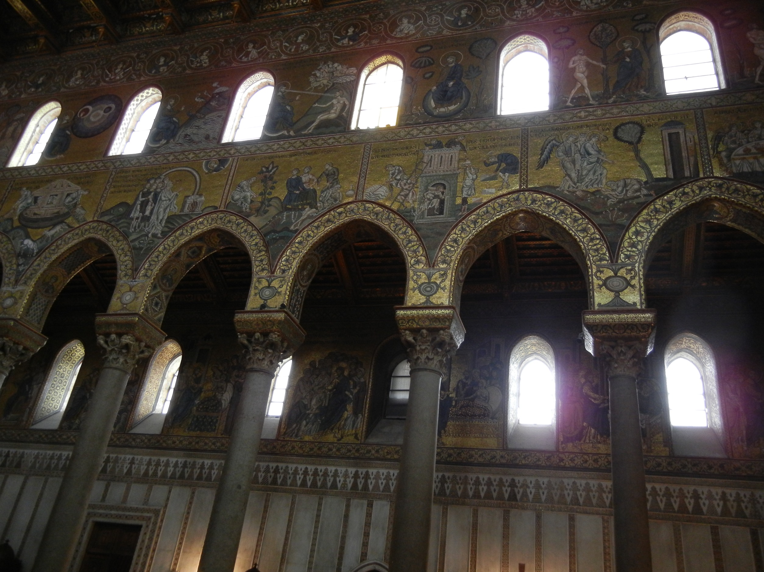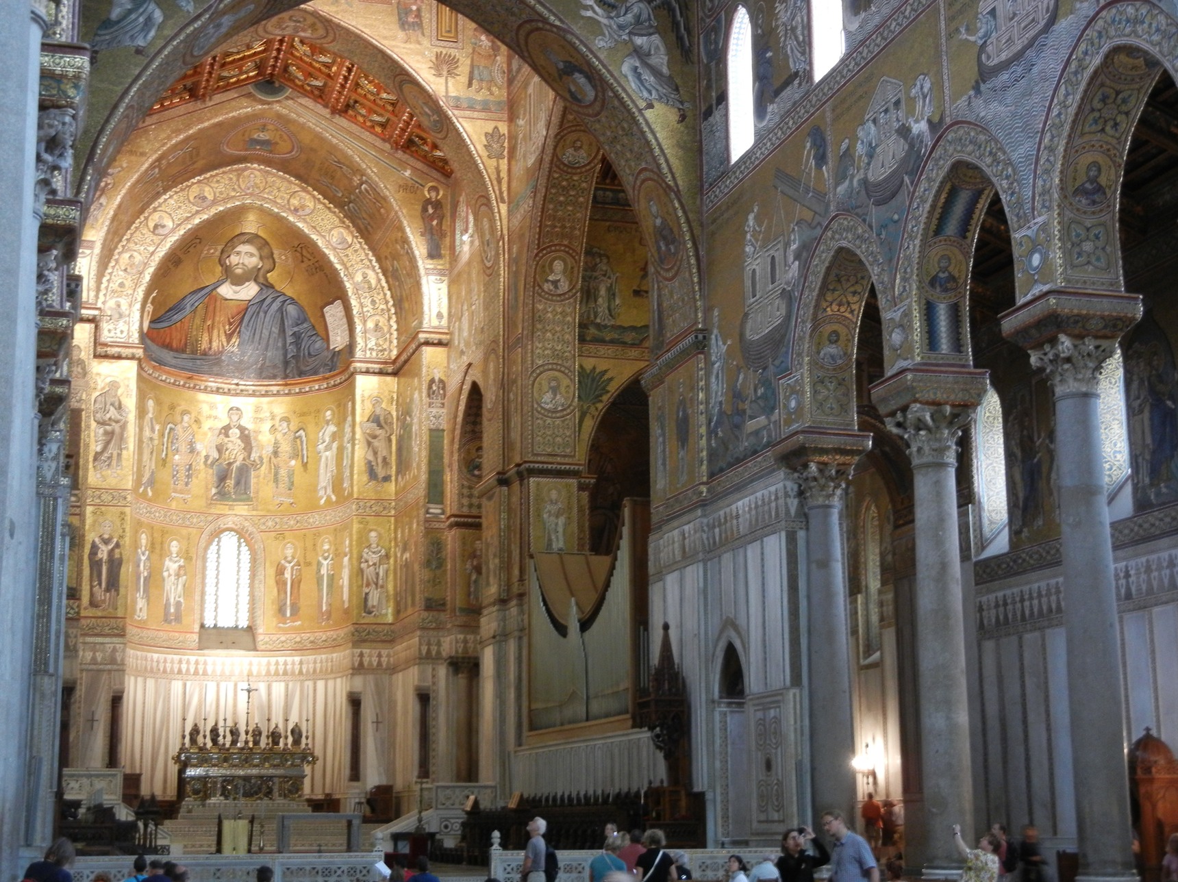 Monreale is a very short 8 km. hop from Palermo. The 12th century Norman cathedral with its mosaics is the main attraction here. The cathedral is literally wall papered with golden mosaics that tell the stories of the bible.