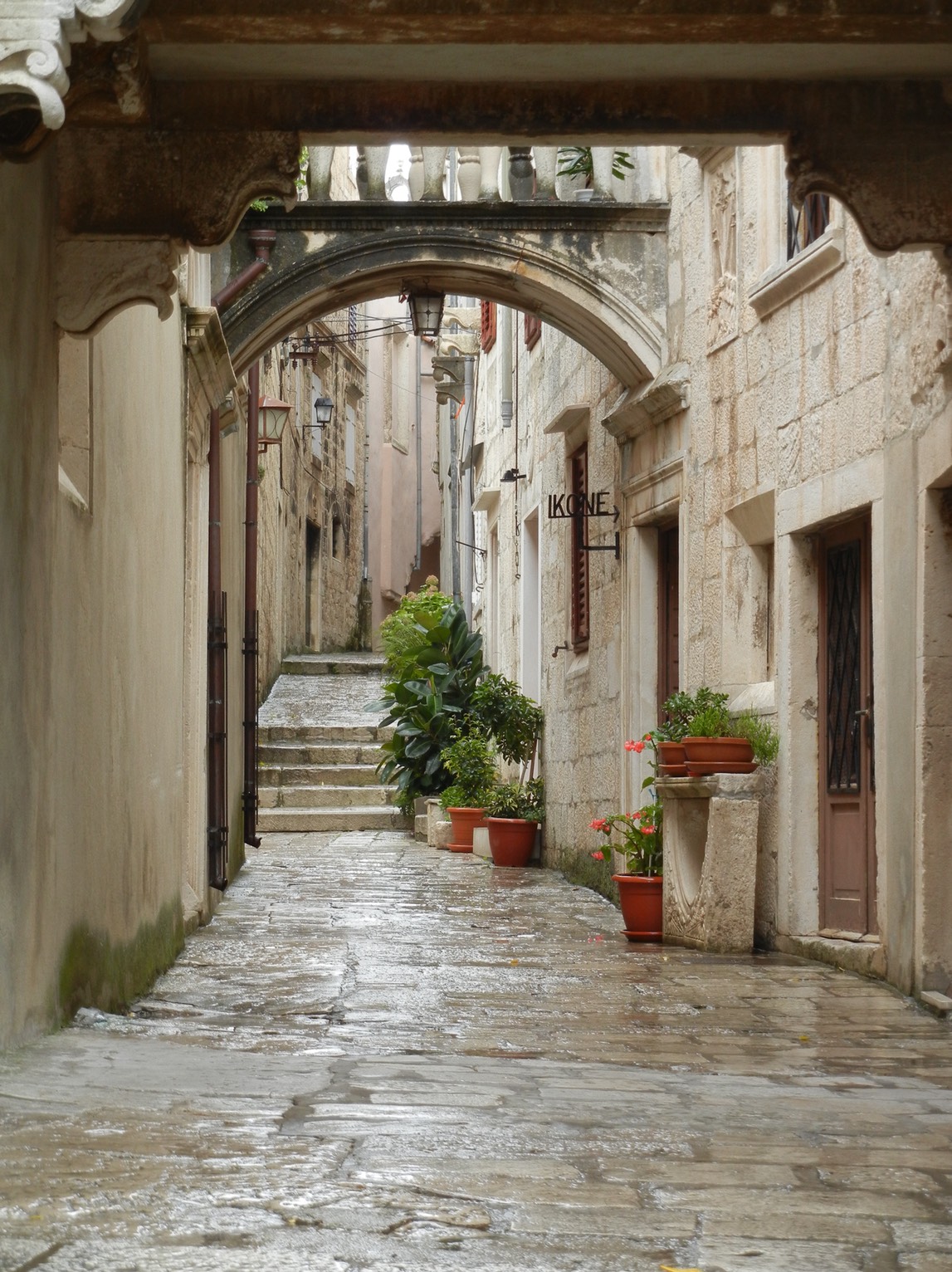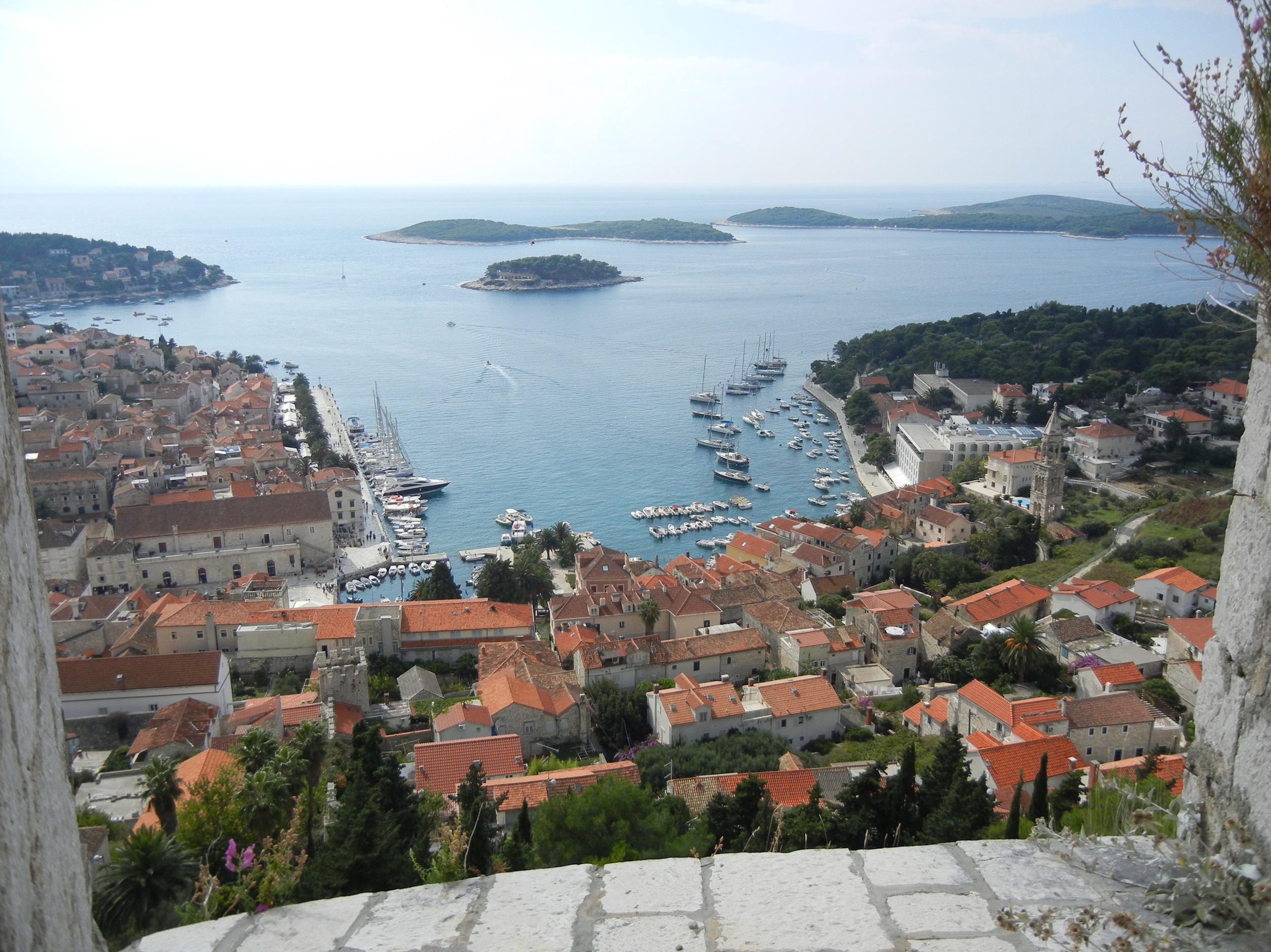 The majority of time on our tour was in Croatia. Croatia is large in comparison to Slovenia. The villages we visited were picturesque, reminiscent of many hill towns we have visited in Italy and France. Along with their settings came major cardio workouts exploring them and in some cases, even getting to them! On this page we have not included our visit to Plitvice Lakes National Park. That area is so magnificant that we have those photos on a separate page. Similarly, our photos of Dubrovnik will be found on their own page. Our time traversing Croatia included visits to the islands of Hvar and Korcula. We had the pleasure of having a day totally on our own in Korcula. We couldn’t have asked for a more pleasant place for that!
